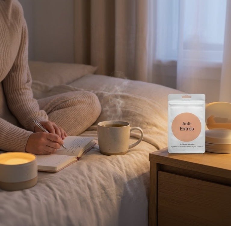 ¿Te sientes abrumado por el estrés o la ansiedad? Prueba nuestros Parches Antiestrés, potenciados con una mezcla calmante de lichi, corteza de magnolia, extracto de té verde, GABA, vitaminas del complejo B y ashwagandha. Estos parches están diseñados para calmar la mente de forma natural, favorecer el equilibrio emocional y promover una sensación de calma constante durante todo el día. Fáciles de usar y eficaces, son tu aliado diario para aliviar el estrés.